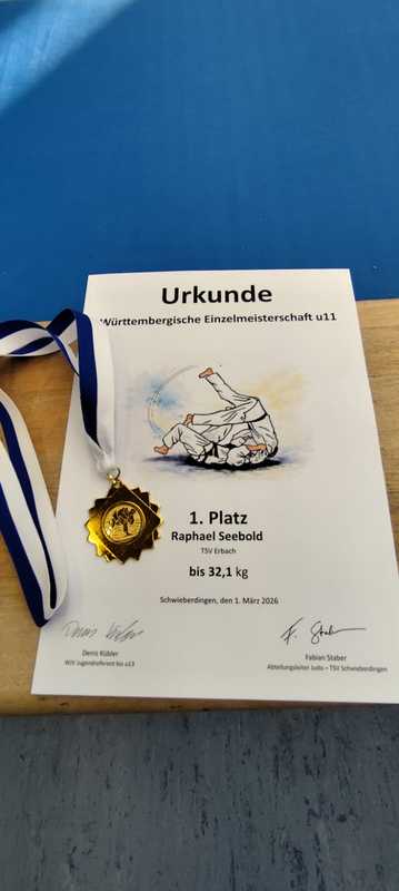 Am 1. März hat Raphael den 1. Platz bei den Württembergischen Einzelmeisterschaften U11 bis 32,1kg in Schwieberdingen gewonnen. Er hat alle vier Kämpfe im Bodenkampf mit Ippon beendet. Hierzu herzlichen Glückwunsch